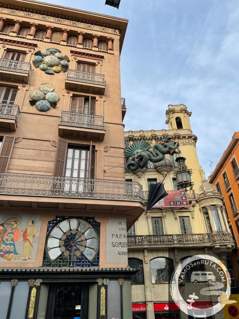 La casa de los paraguas, de 1858, en las Ramblas de Barcelona está a 2 minutos de la calle Petritxol y es uno de los edificios más emblemáticos modernistas de la ciudad.