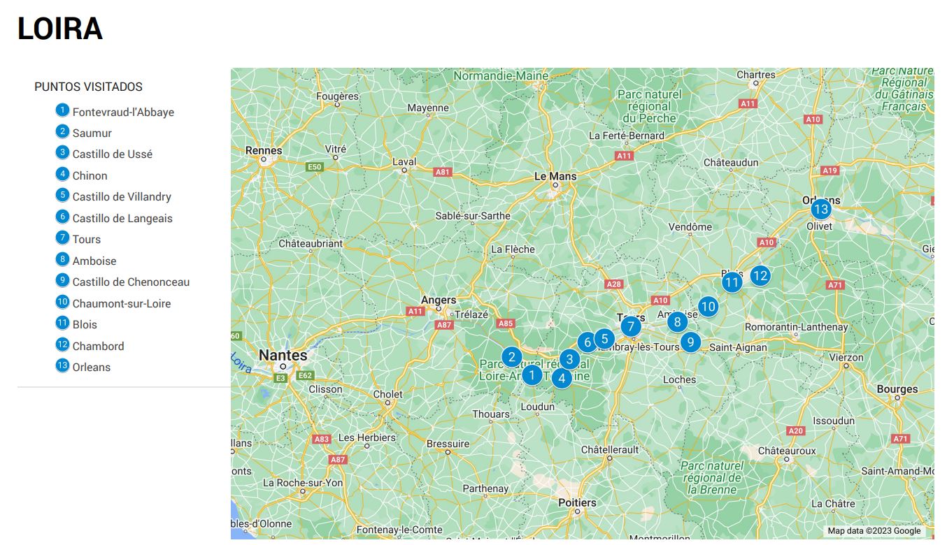 En este enlace encontrarás la ruta que hicimos una vez en Francia para ver los castillos más famosos de la zona
