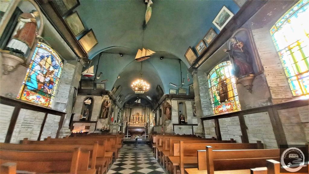 Este es el interior de la Iglesia y si alzas la vista hacia el techo verás que parece un barco invertido.