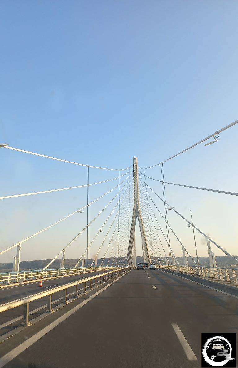 Este es el puente atirantado, de más de 2km de longitud que une Havre con Honfleur. Años duró su construcción y es realmente impresionante. Mientras lo estuvimos cruzando da la impresión de que no se acaba nunca.